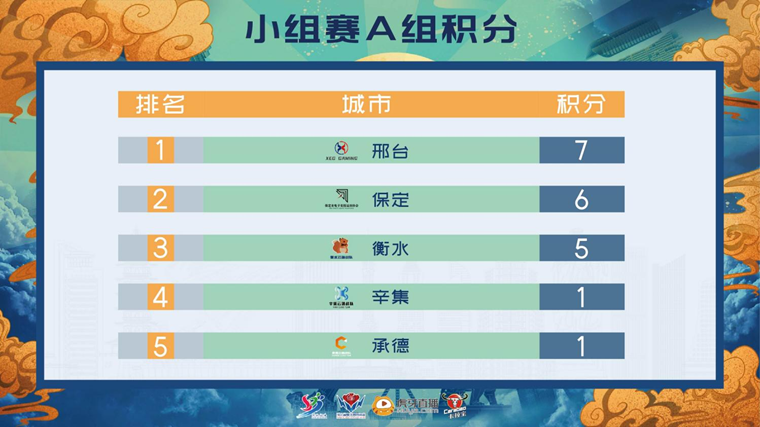 根据规则,11-12日经过小组双循环比赛,各代表队进行了积分排位。