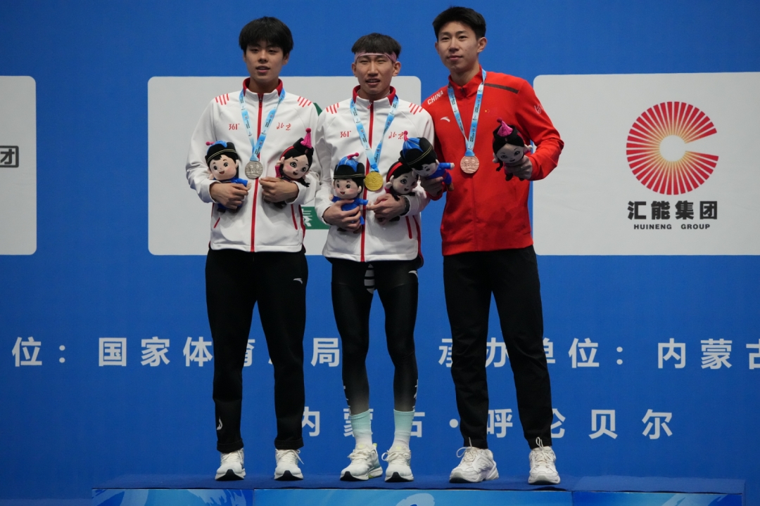 天气转暖后的凉城赛场晴空万里,共有48位青年选手报名参加越野滑雪个人短距离赛,比赛采用淘汰制,男子组一圈1.4公里,经过资格赛、1/4决赛和半决赛淘汰,最后6名选手进入争夺奖牌的决赛。马德辉虽在半决赛滑出3分15秒96的全场佳绩,但他在决赛中状态不佳,最终落后冠军7秒71获得铜牌。“这是我‘十四冬’收获的首枚奖牌,这也是我第一次参加全国性的比赛。赛前我在心里为自己加油打气,相信自己一定能行,最终按照预期滑完了全程。”